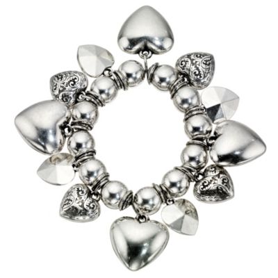 Bijou beauty Add some charm to your arm, with this chunky heart, and glistening beaded charm bracelet. Featuring beautifully engraved and quirkily cut hearts.
